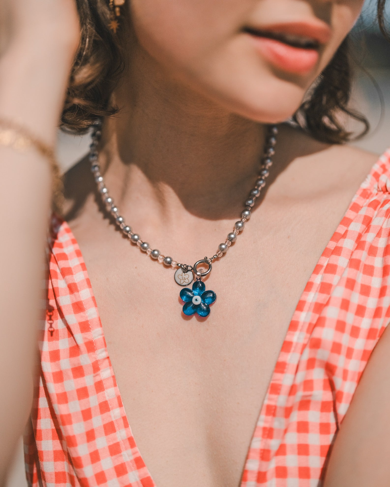 Ces 5 bases de colliers sont conçues pour être personnalisées grâce à des pendentifs en verre. Ce collier associe des perles en verre et un fermoir en acier inoxydable placé à l’avant. Versatile, ce collier peut aussi se porter le fermoir derrière le cou pour un look plus simple. Les pendentifs en verre s’enfilent facilement sur le fermoir, permettant de créer un bijou unique et d'en changer !
