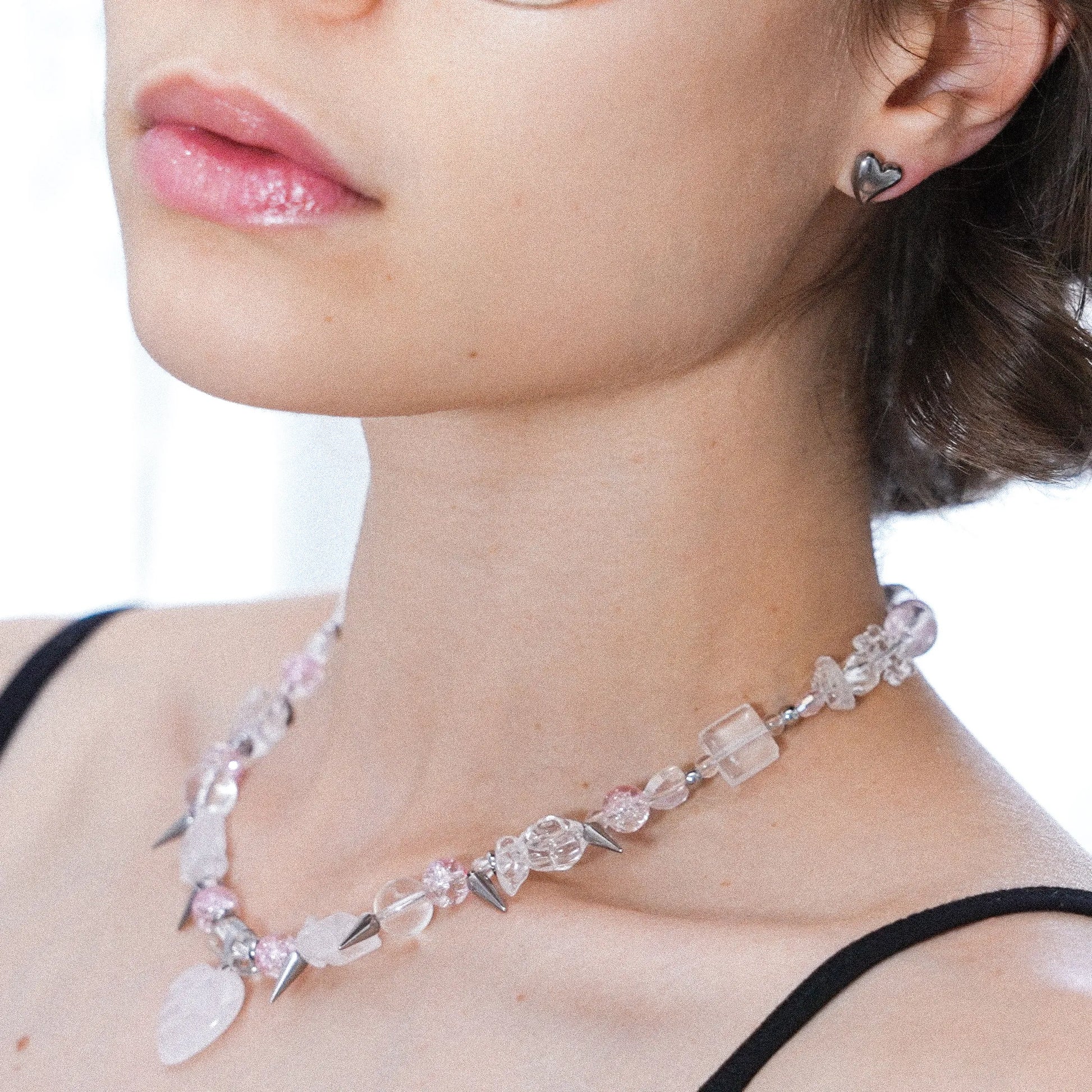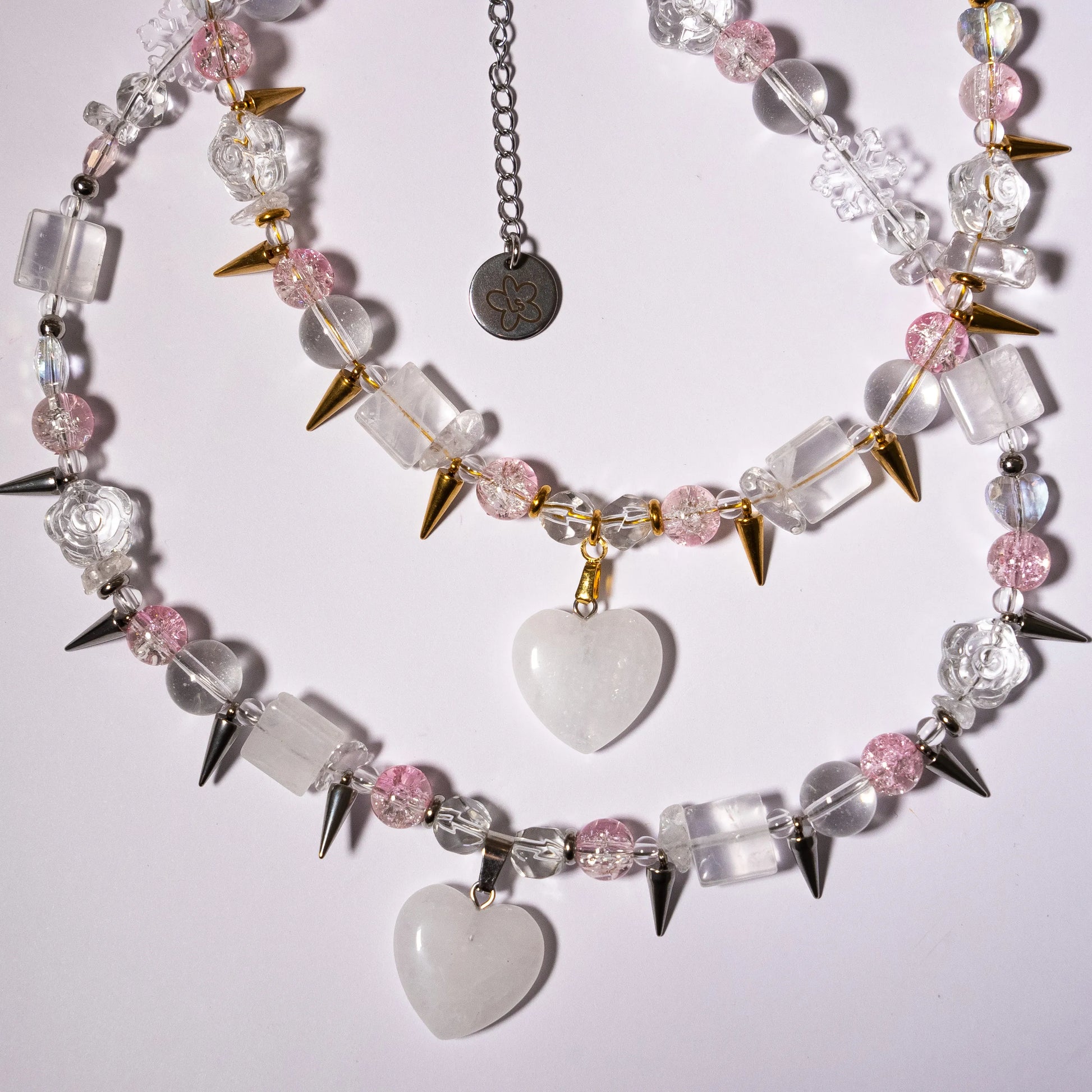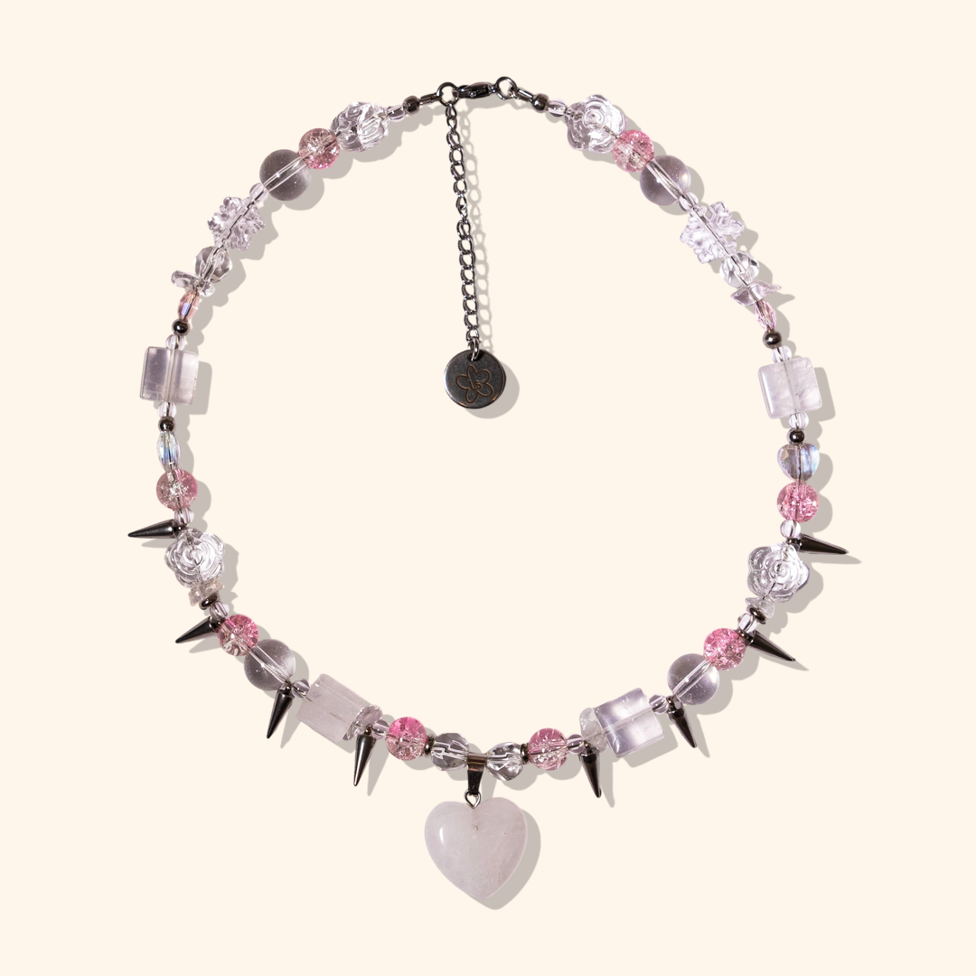 Ce collier Givré, comme chaque bijou de cette collection, est inspiré d'une illustration réalisée par mes soins (non inclue). Ce collier joue sur un contraste de douceur et de piquant. Le blanc et le rose poudré s'harmonisent avec impact, entre mélange de forme, matière et style.