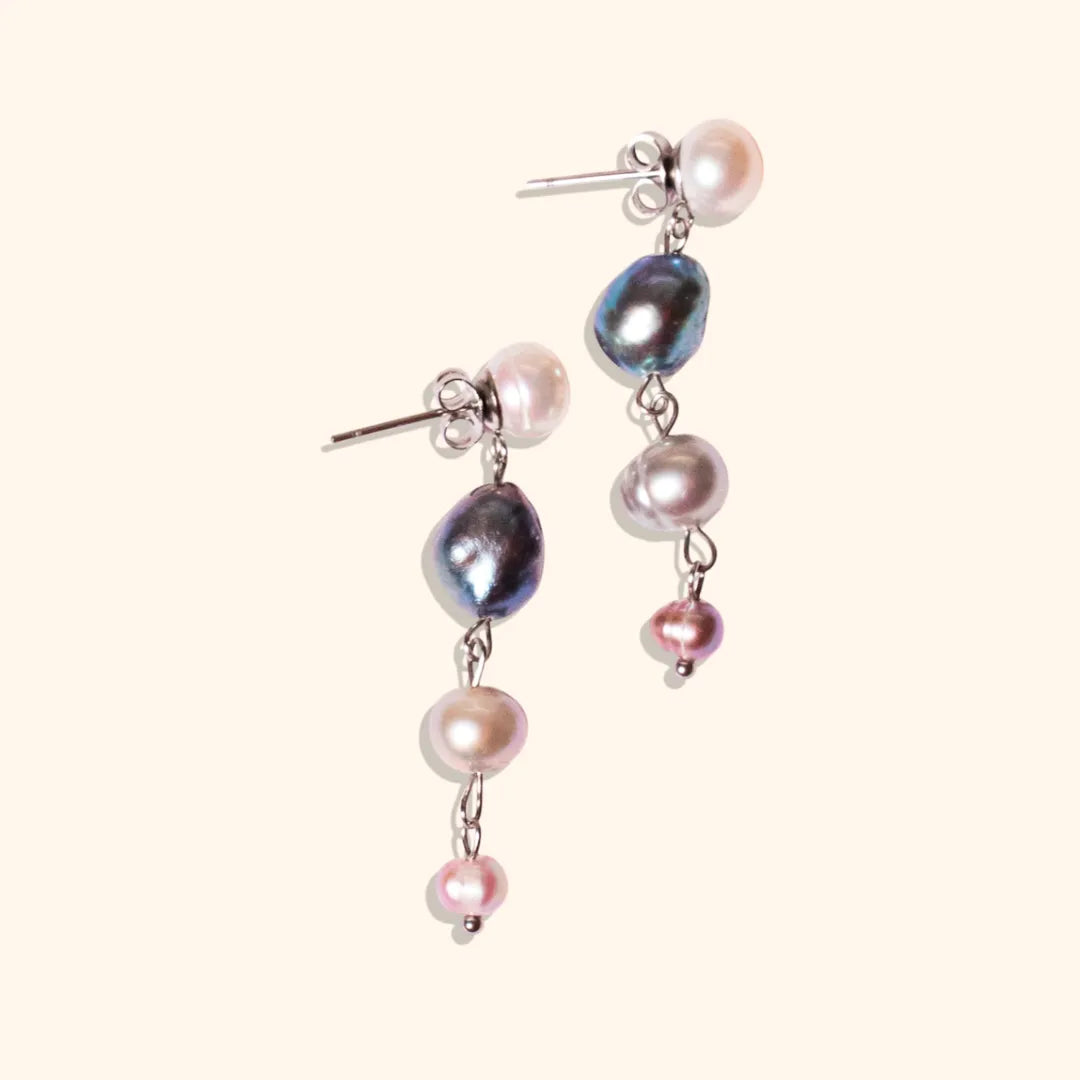 Ces boucles d'oreilles Fée de la Mer sont composées d'un assemblage délicat de perles d'eau douce qui évoquent des gouttes d'eau. Elles s'harmonisent parfaitement avec le collier assorti.