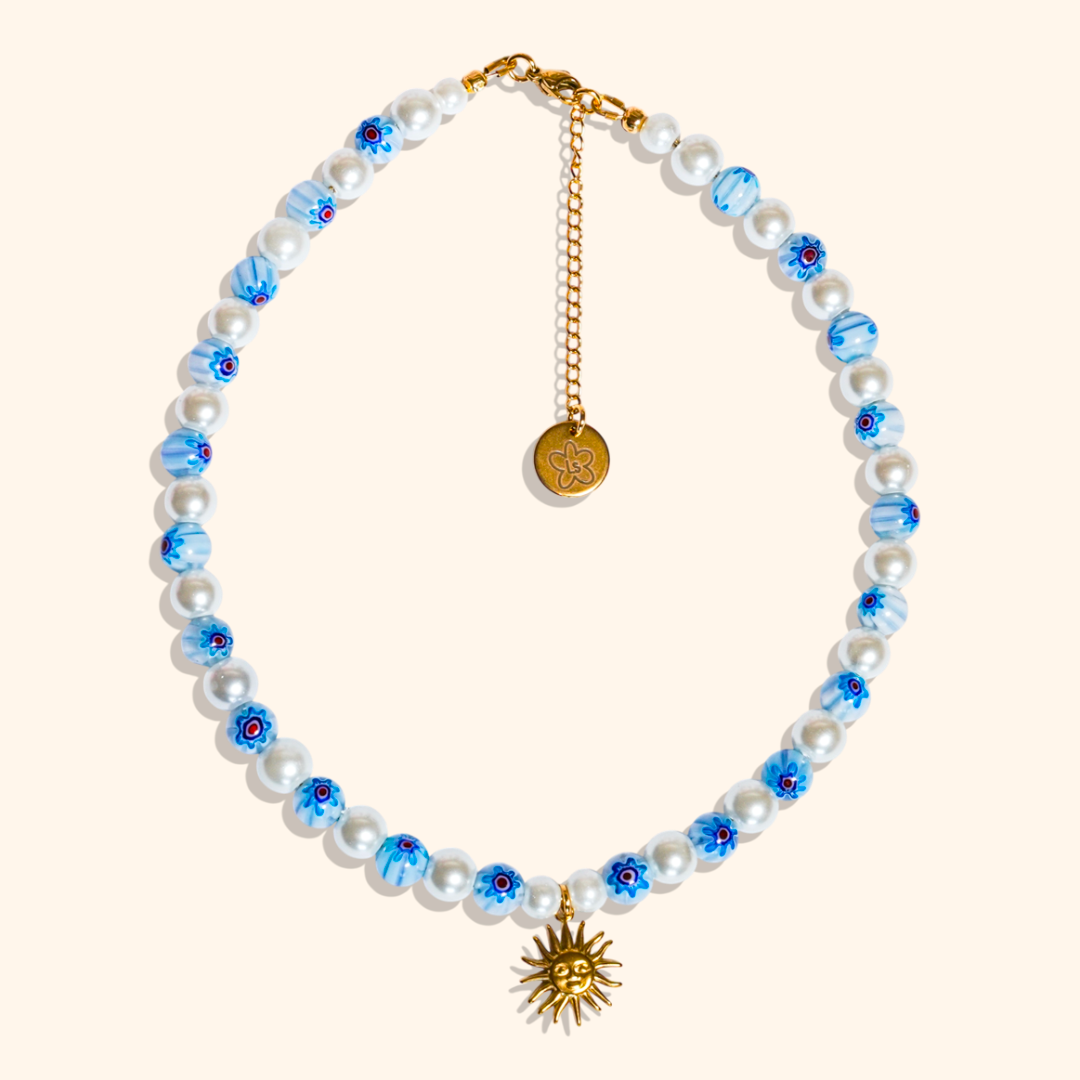 Voici le collier Héméra, un bijou audacieux qui sublime la simplicité. Disponible en 4 coloris, il associe des perles en verre nacrées et fleuries à un pendentif soleil, symbole d'énergie et de lumière. Ce collier révèle la force intérieure avec élégance et originalité.