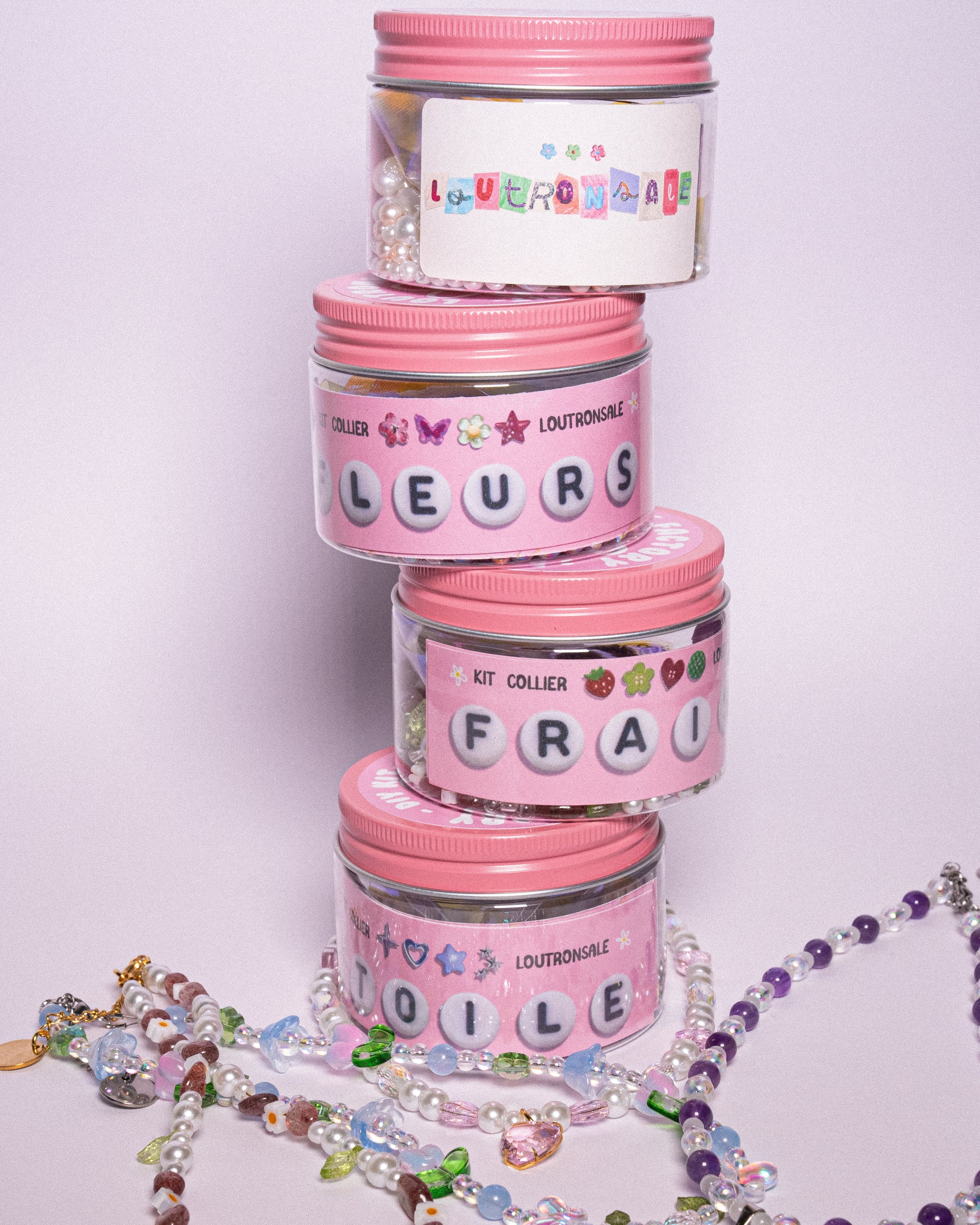 Ce petit bocal contient toutes les perles et apprêts pour créer 3 colliers de votre choix !