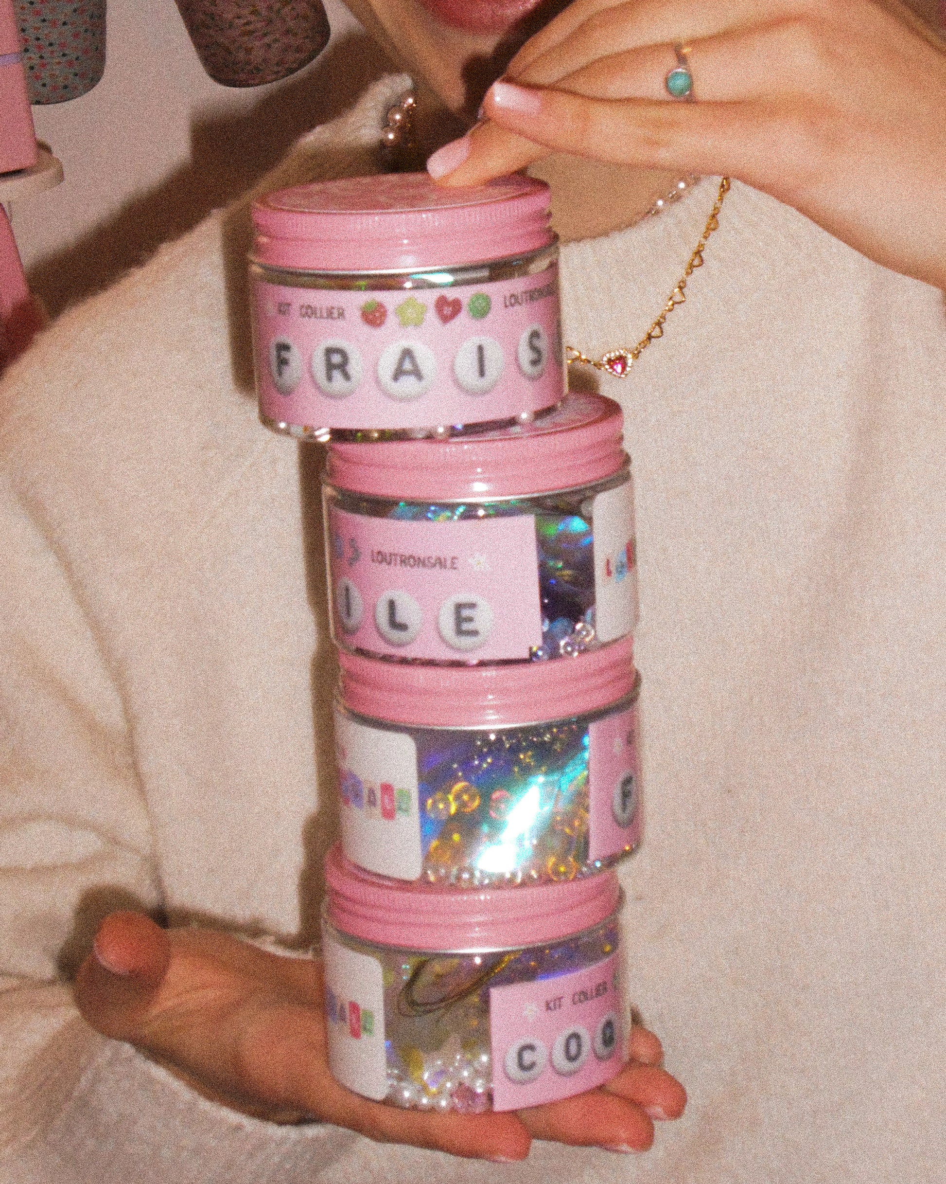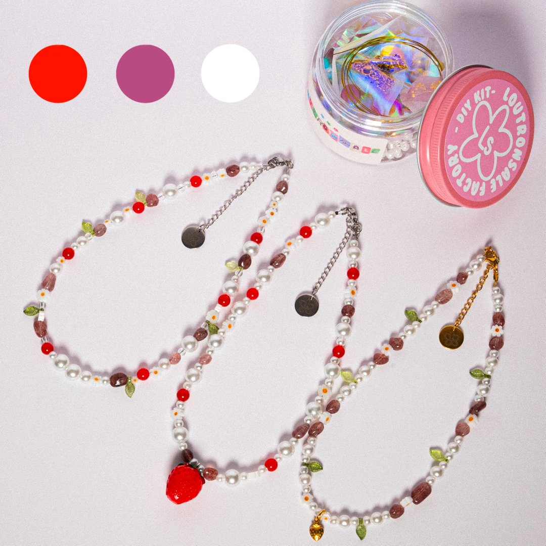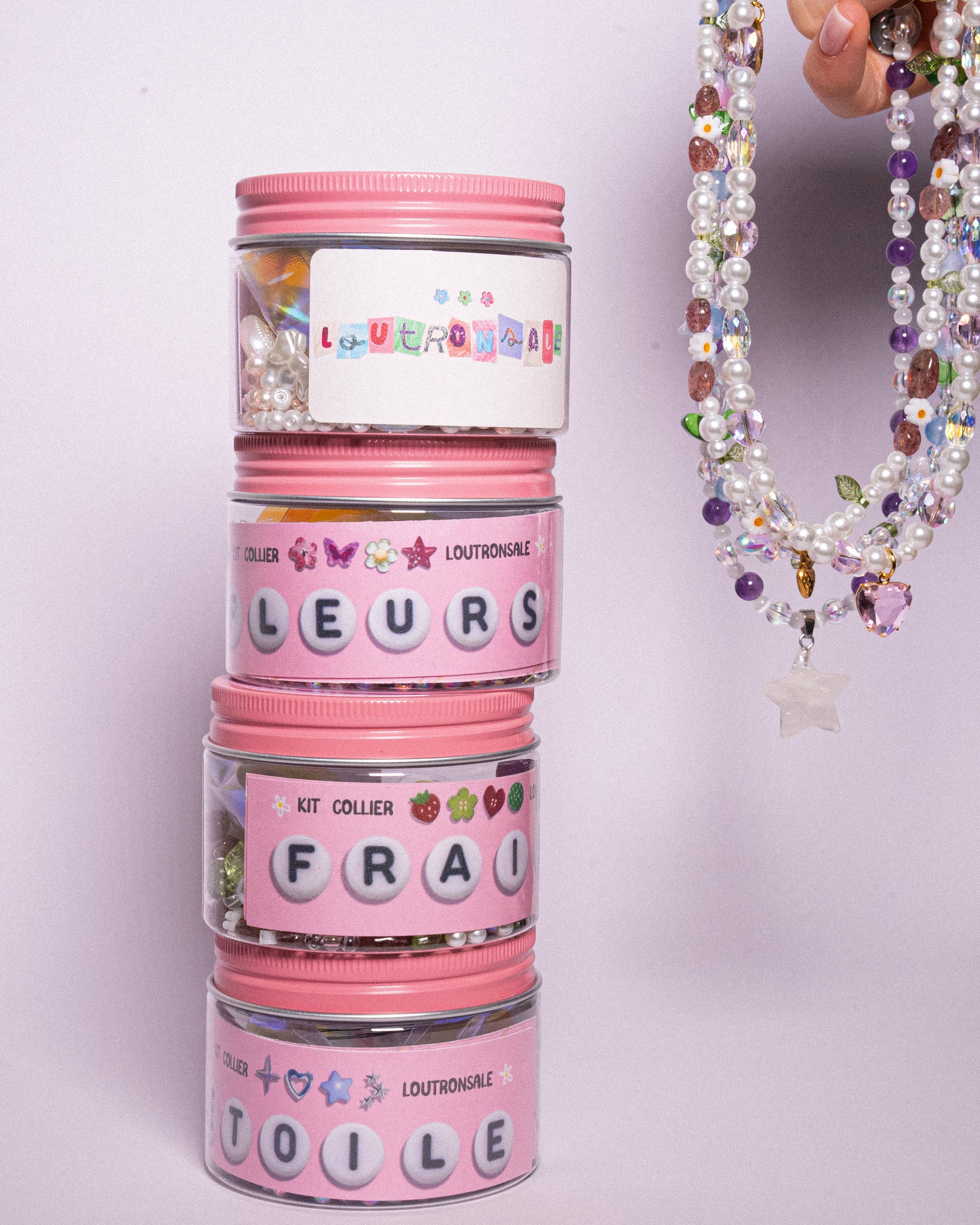 Ce petit bocal contient toutes les perles et apprêts pour créer 3 colliers de votre choix !